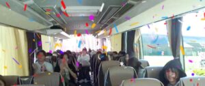 この日が誕生日の生徒さんがおられたので、バスの中で誕生日のお祝いをしました。