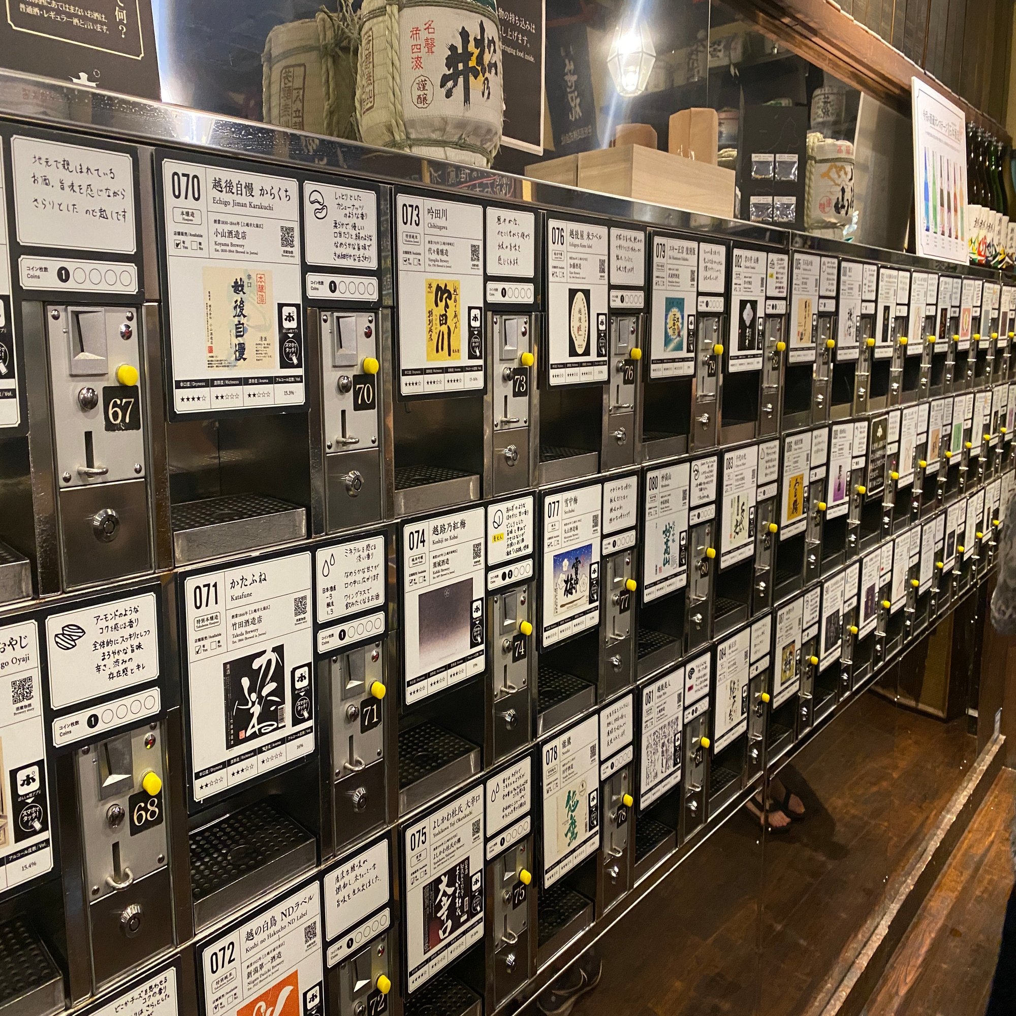 こんな感じで地酒が並んでおり、コインを入れるとおちょこ一杯分お酒が出てきます。